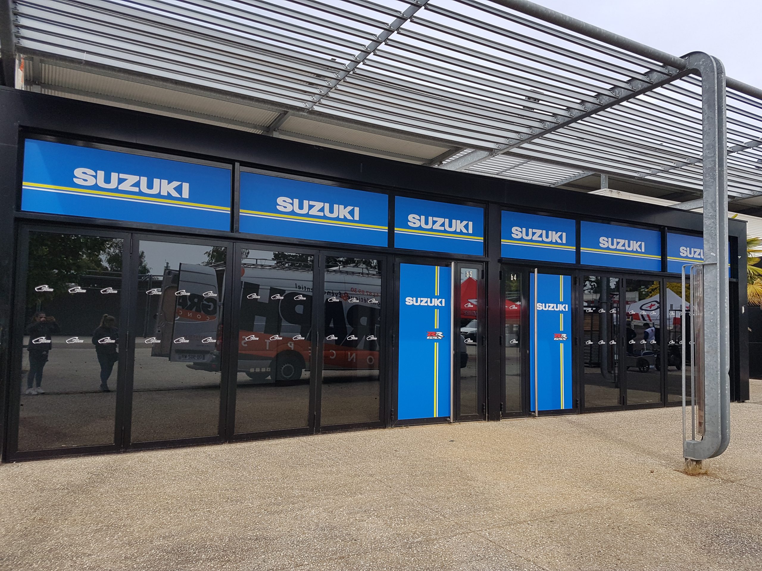 Habillage du Welcome du circuit des 24 Heures du Mans, de ses boutique du village et autres. Découvrez nos réalisations lors de ces éditions du Grand Prix de France Motos