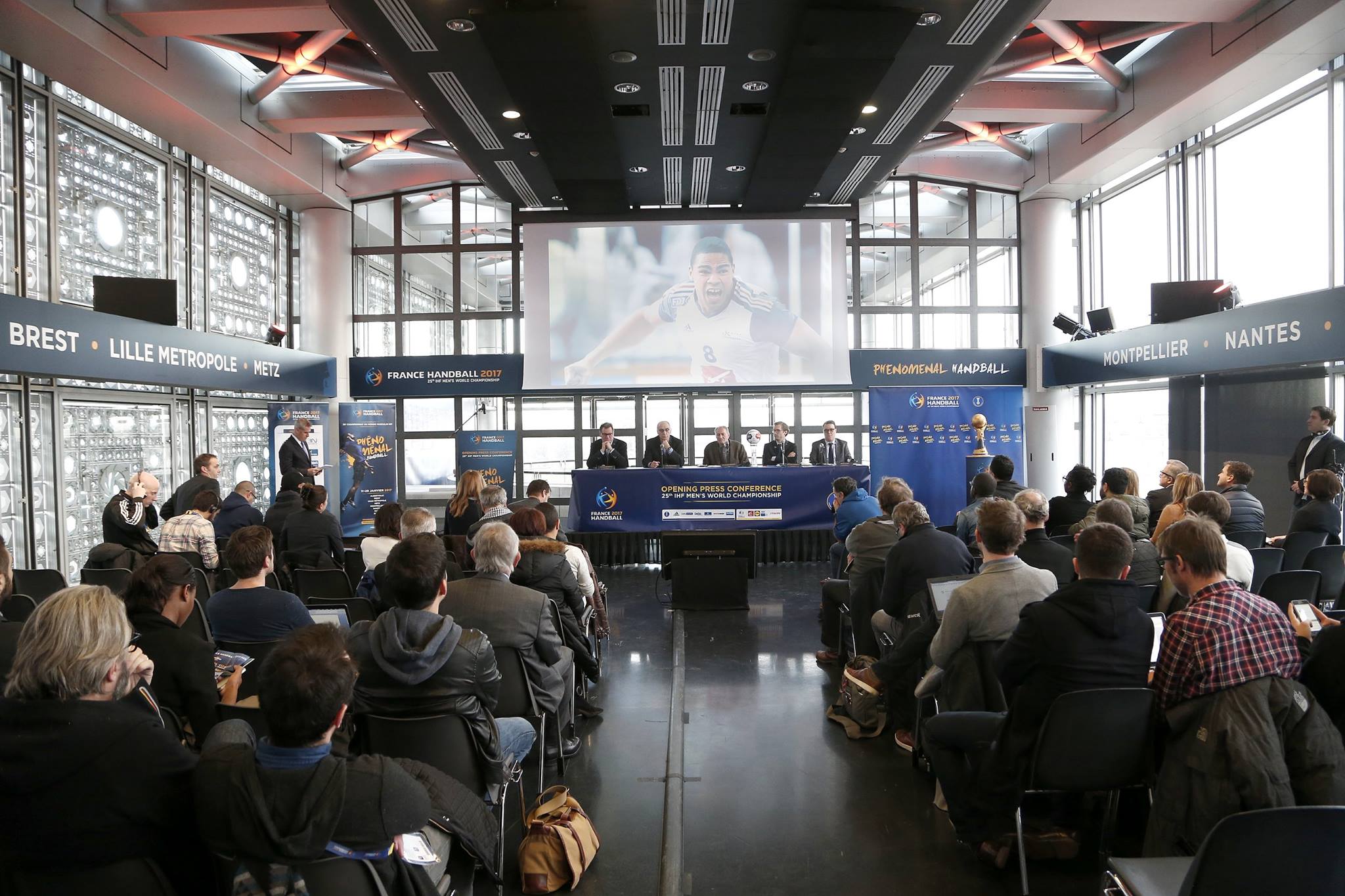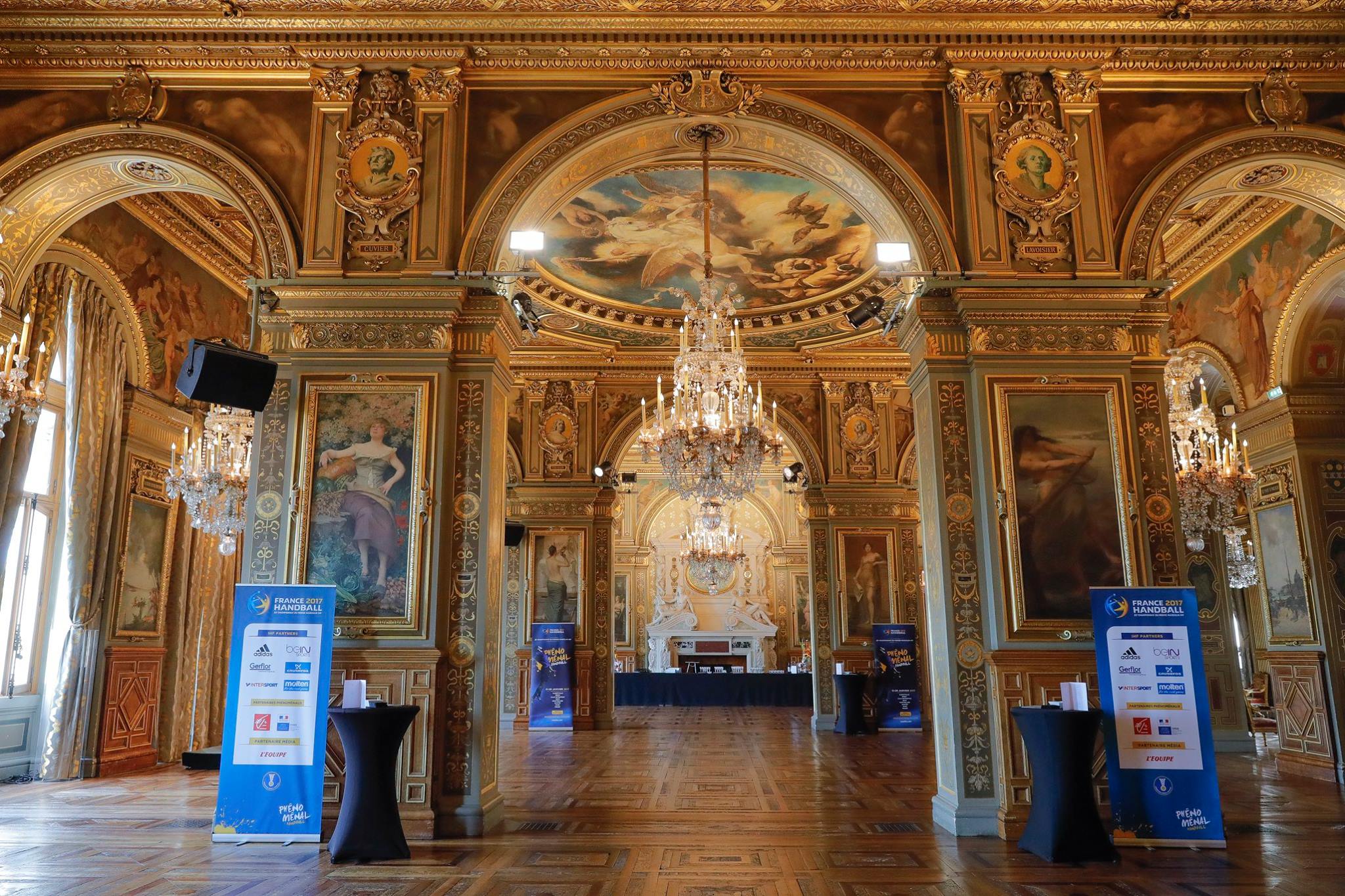 Mis en place à la marie de paris de la visibilité servant au tirage au sort et aux conférences de presse du championnat du monde 2017 de Handball