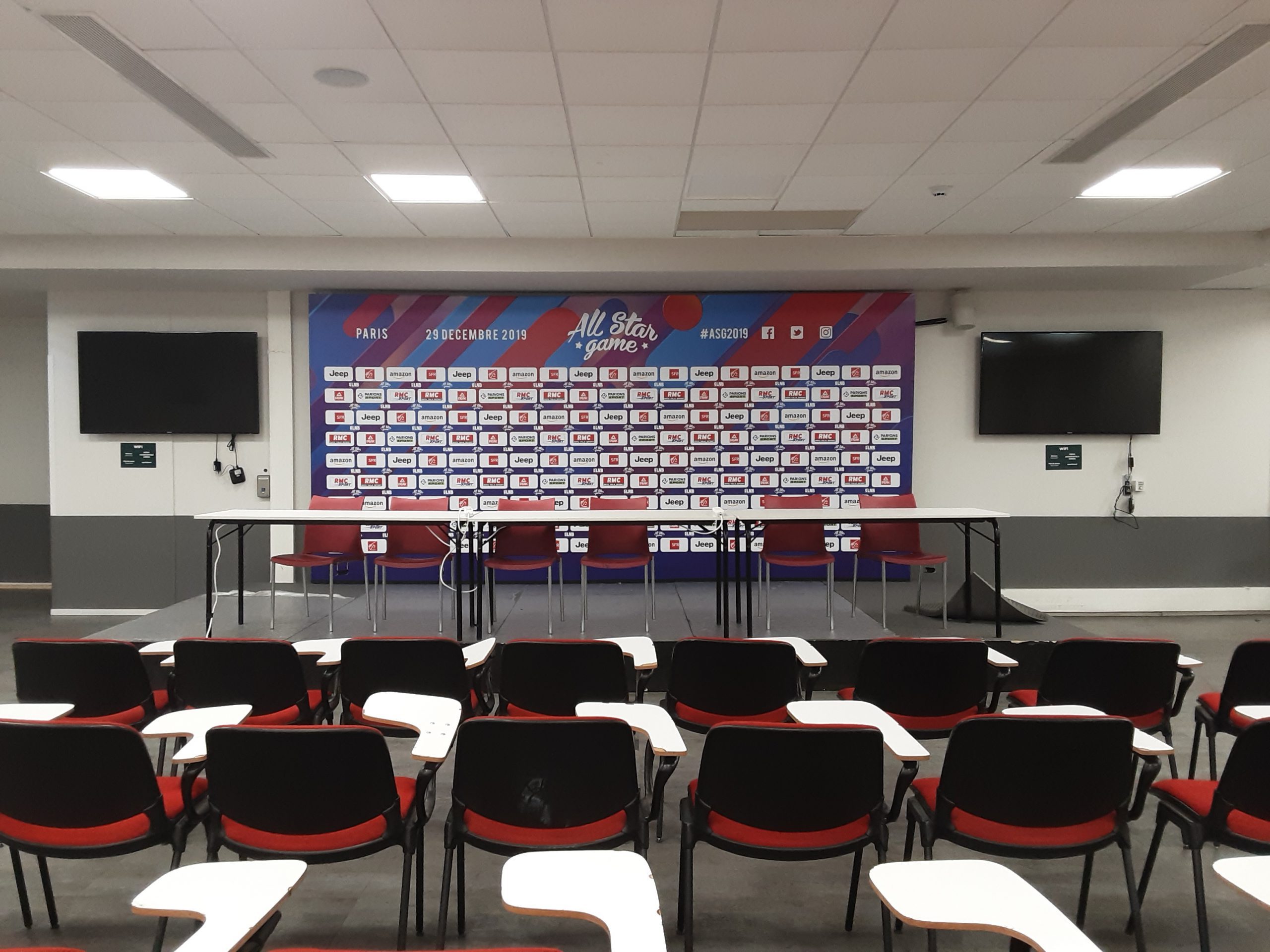 Depuis 2003, nous réalisons la décoration des All Star Game à l’AccorHotels Arena de Paris (Bercy). Terrain, signalétique, mobilier sur mesure, salle de presse, salon VIP, boutiques officielles, etc.